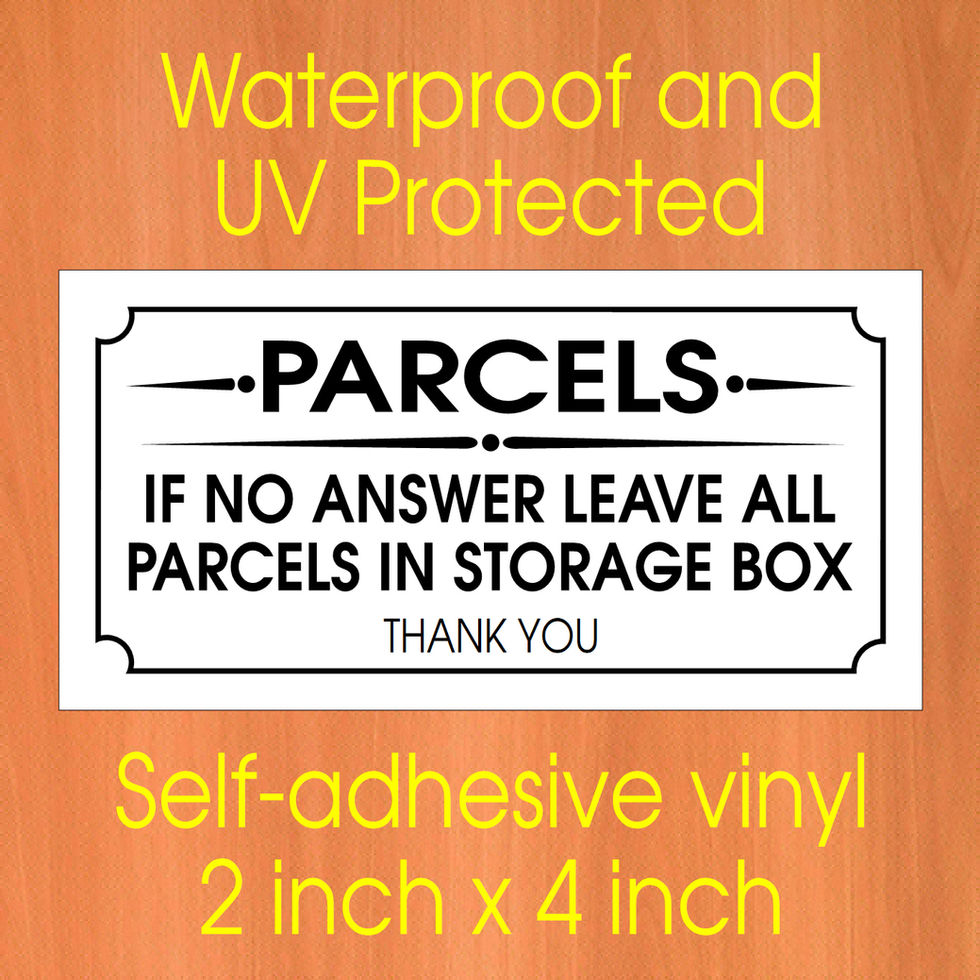Parcels: If No Answer, Leave All Parcels in Storage Box" Self-Adhesive Vinyl Sticker